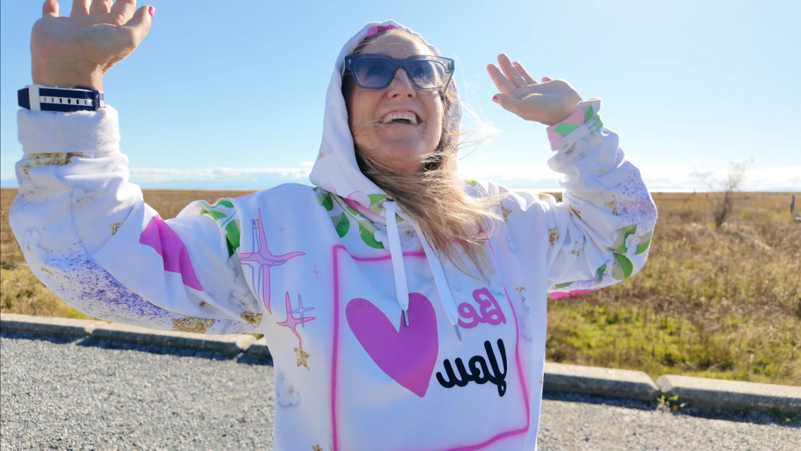 • Double-lined hood with design on both sides