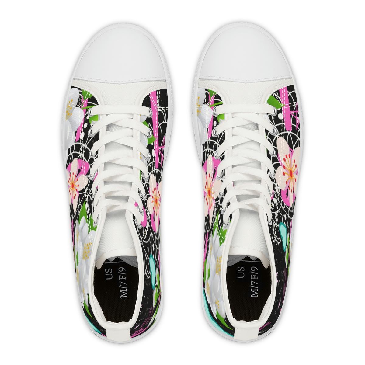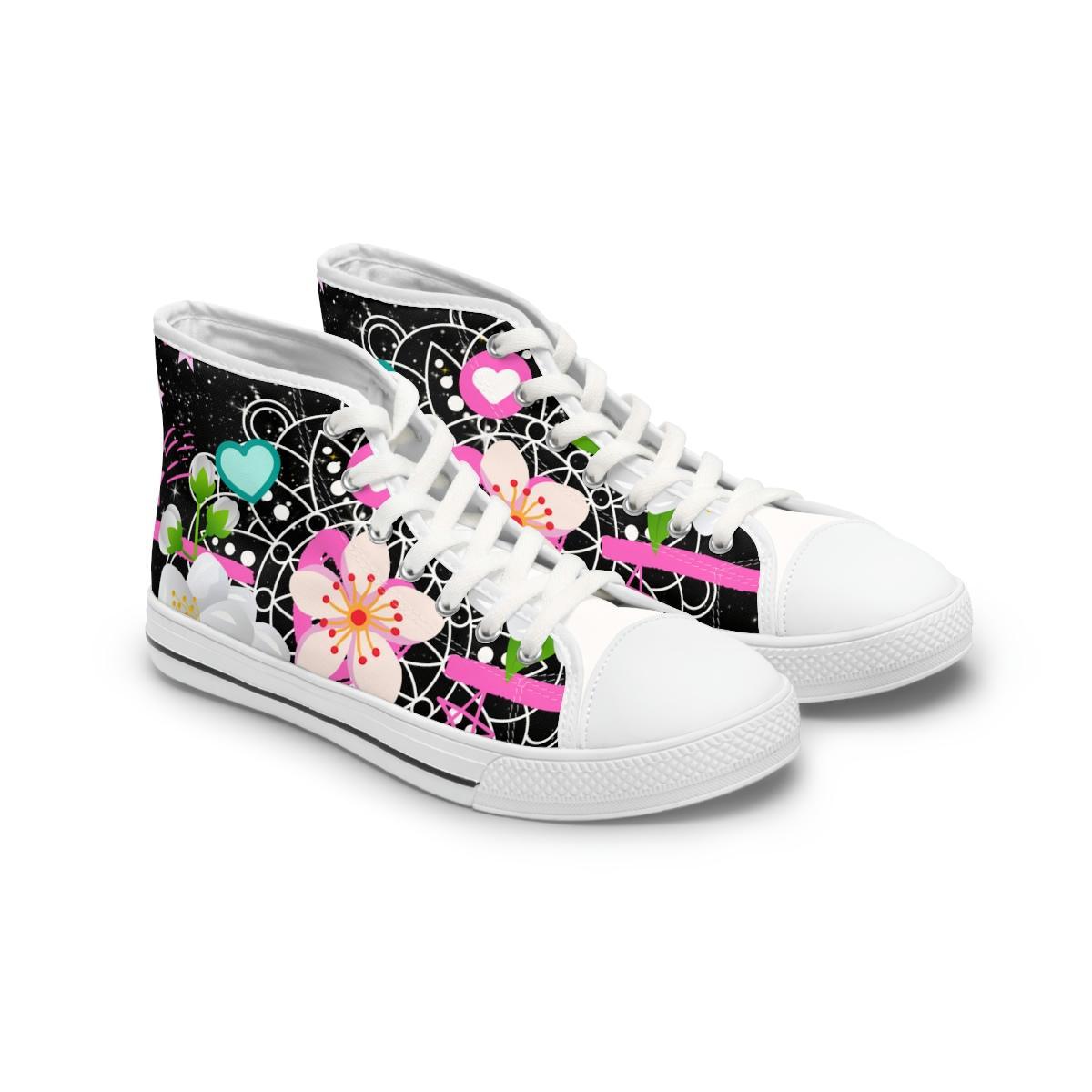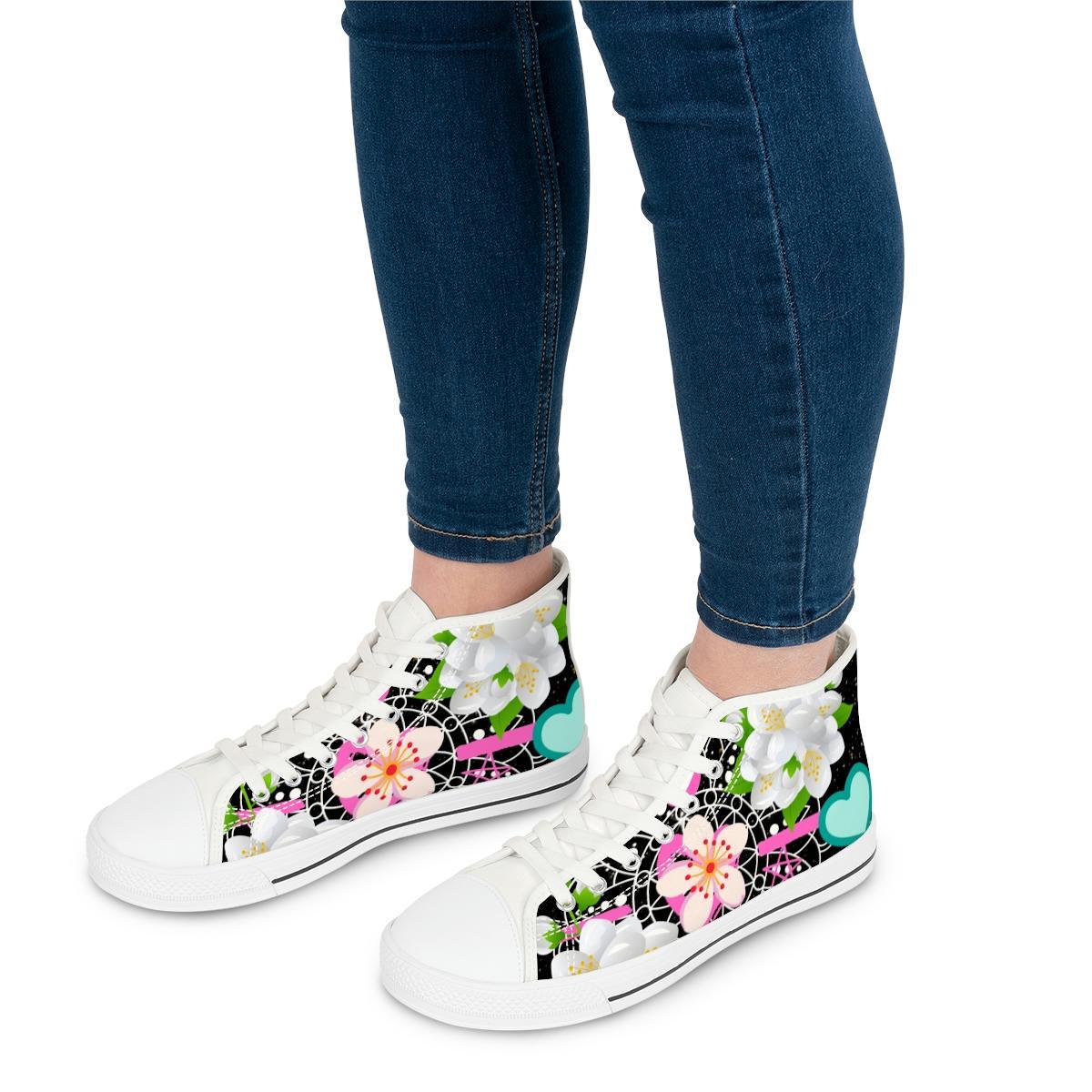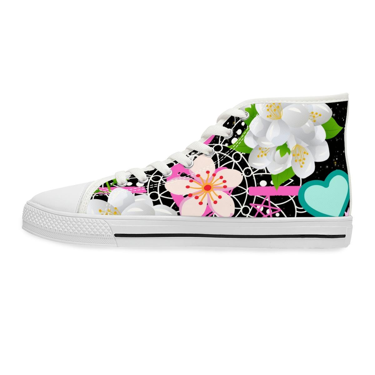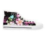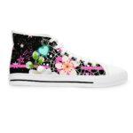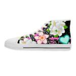 Made with breathable polyester canvas and featuring hi-poly deodorant memory foam insoles, these women’s high top sneakers bear all the marks of an awesome shoe. Choose between black or white sole and laces, and enjoy the silver metal eyelets along with the lace-up closure. Add your designs and bring a bespoke staple to life.
